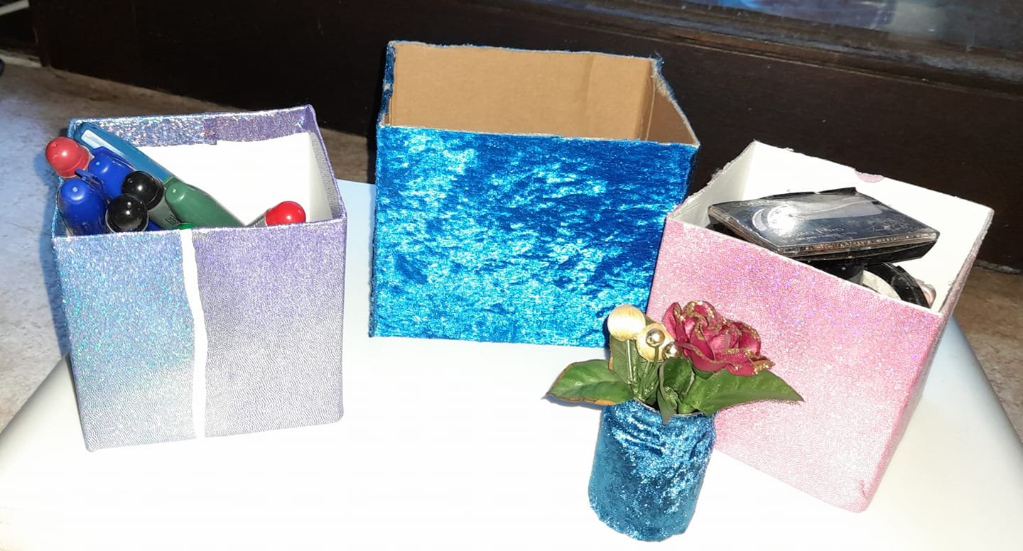 Terwijl je in je kot blijft, het gezellig maken door doosjes, potjes, emmertjes te beplakken. Geluk ligt in kleine dingen. Iets maken dat jij zelf (anderen mogen hun mening houden) mooi vindt en het publiceren zonder dat het je (nog) iets kan schelen wat men ervan vindt.