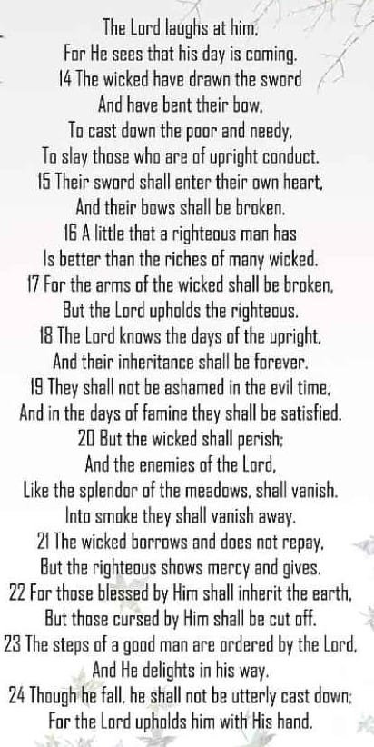Depression, sickness and death are caused by sinful people. But Hallelujah, God will make His enemies a footstool. Let every evil man expect his punishment. Please do NOT doubt, Christ HAS victory. Please laugh out loud with EVERY evil idea or deed. Please grow up good seed that we can burn the weeds. Who and where is the idiot that wants to fight with His Creator and live? Justice is good news!
